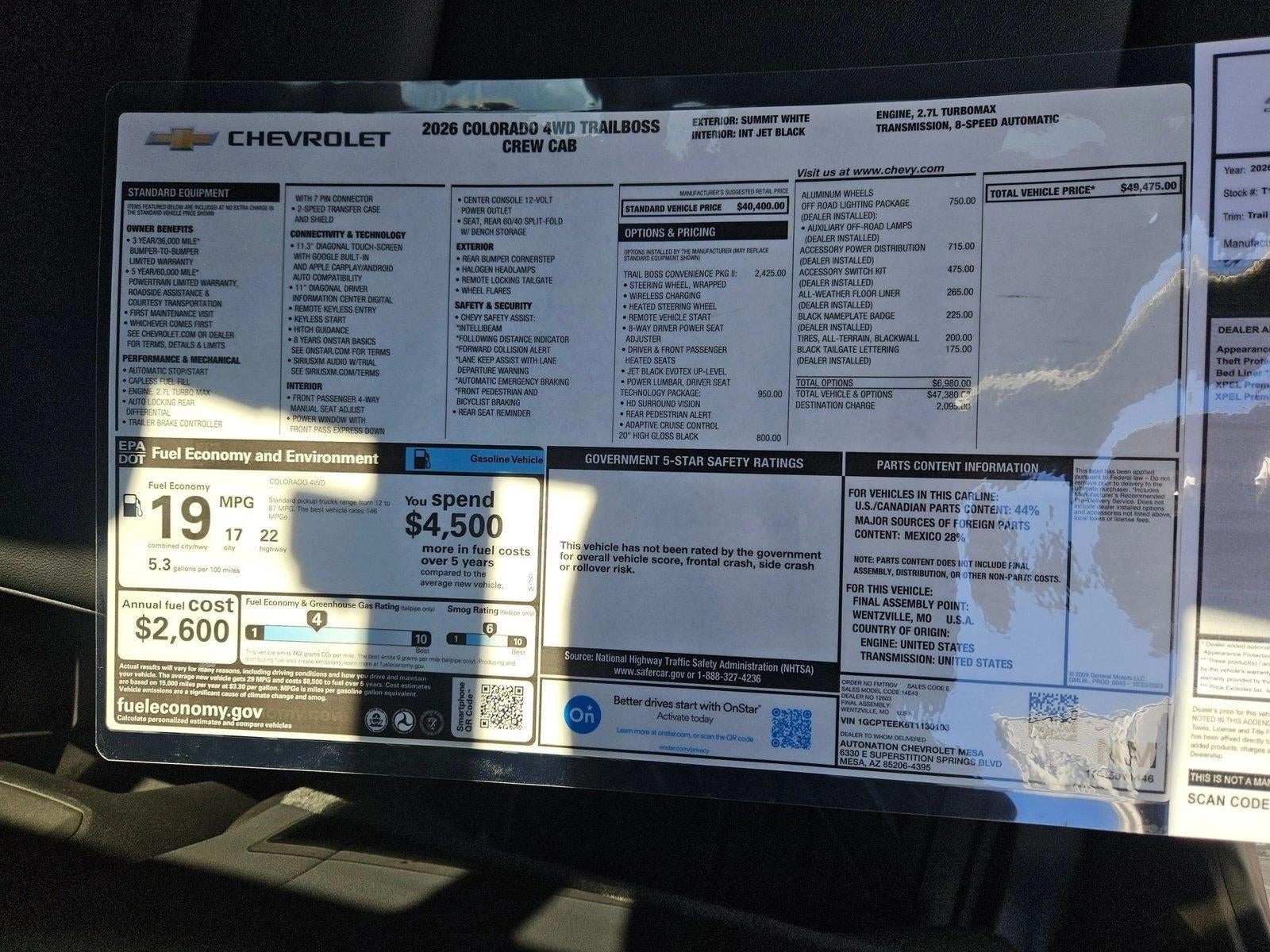 - Trail Boss Preferred Equipment Group includes standard equipment